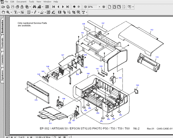 This Epson STYLUS Photo EP-302 / ARTISAN 50 / EPSON STYLUS PHOTO P50 / T50 / T59 / T60 printers Parts List includes 2 files: