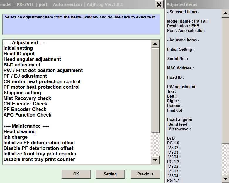 Epson PX-7VII (EHB) Ver.1.0.1 Service Adjustment Program