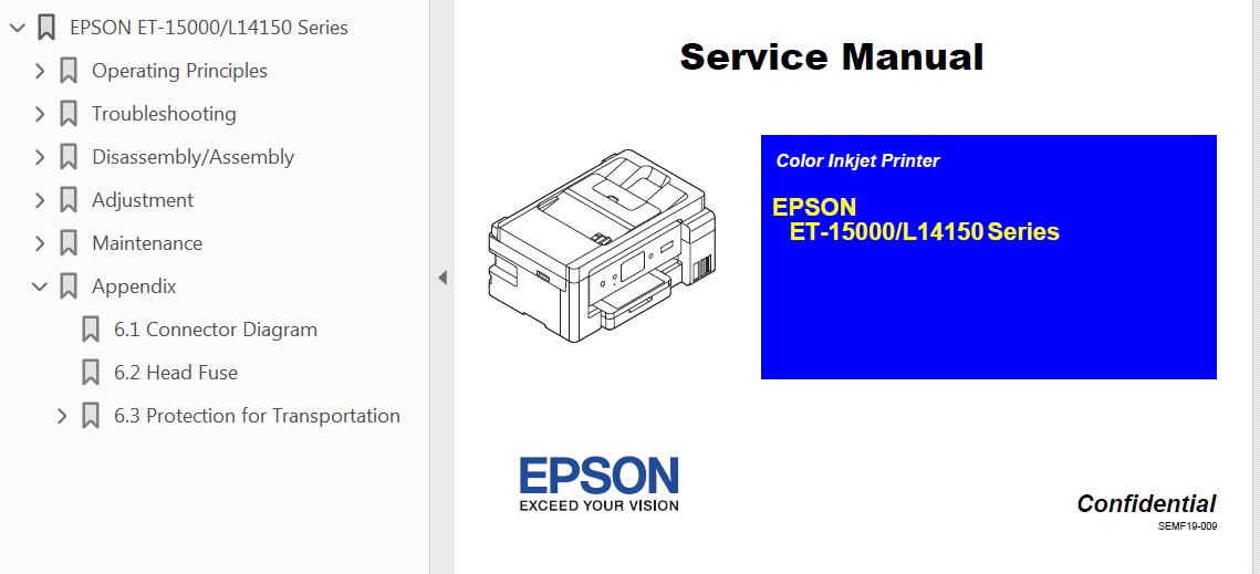 L14150 Series, ET-15000 Series Service Manual describes basic functions, theory of electrical and mechanical operations, maintenance and repair procedures of the printer.