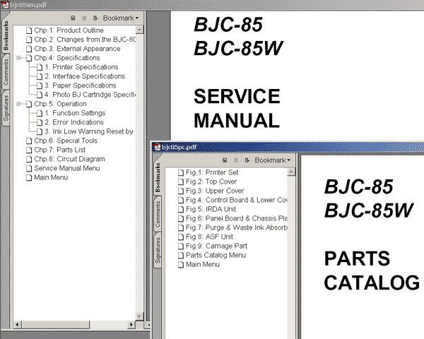 CANON BJC-85 printer<br> Service manual and Parts Catalog